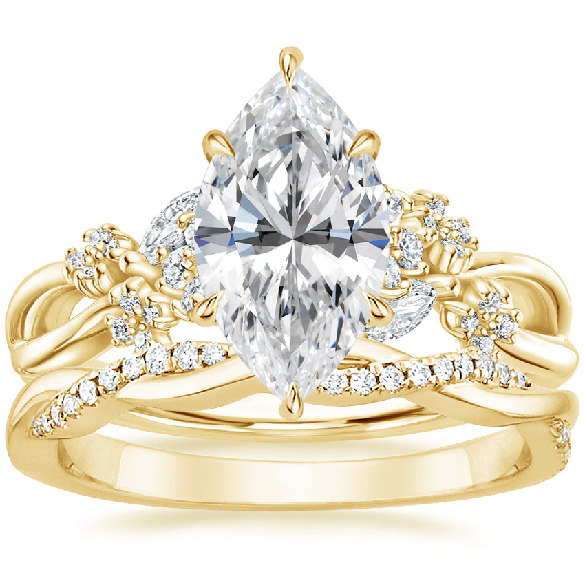 18K Yellow Gold Summer Blossom Diamond Ring (1/4 ct. tw.) with Petite Twisted Vine Diamond Ring (1/8 ct. tw.)