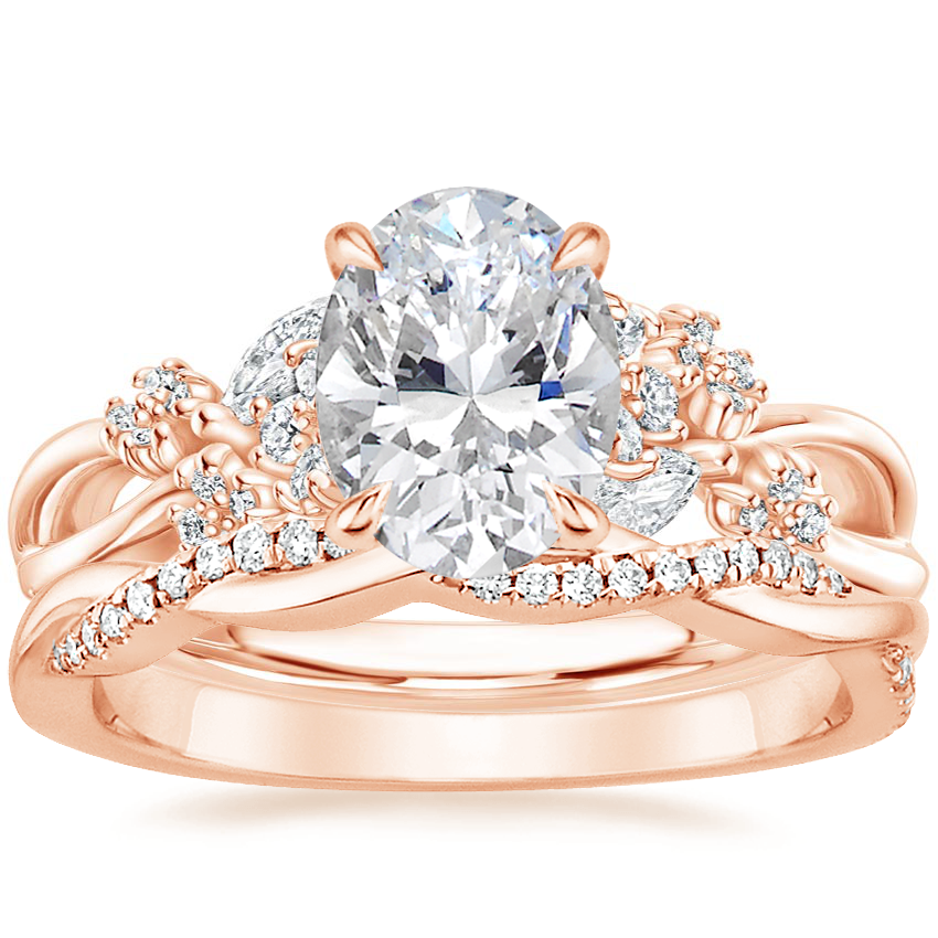 14K Rose Gold Summer Blossom Diamond Ring (1/4 ct. tw.) with Petite Twisted Vine Diamond Ring (1/8 ct. tw.)