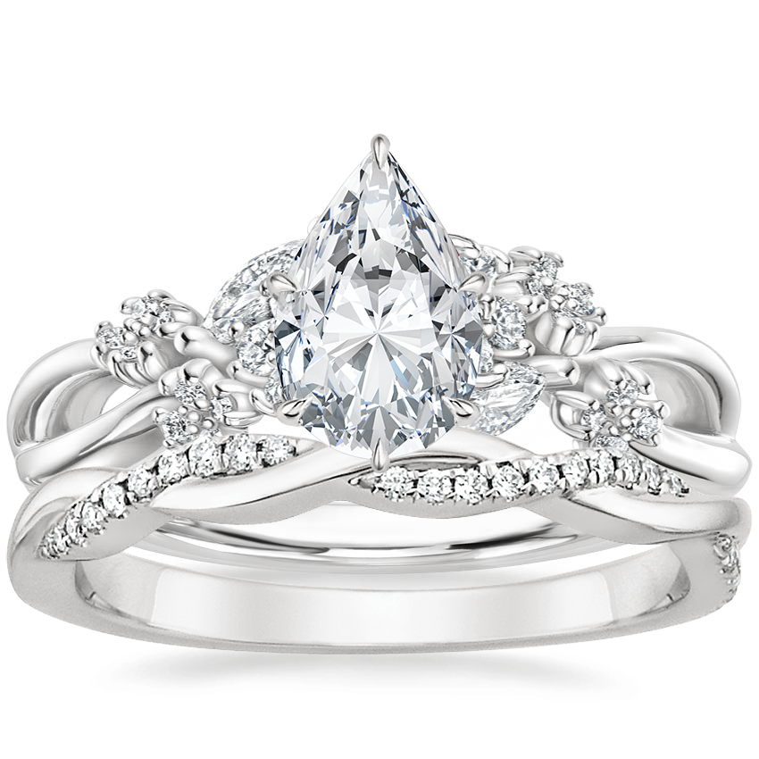 18K White Gold Summer Blossom Diamond Ring (1/4 ct. tw.) with Petite Twisted Vine Diamond Ring (1/8 ct. tw.)