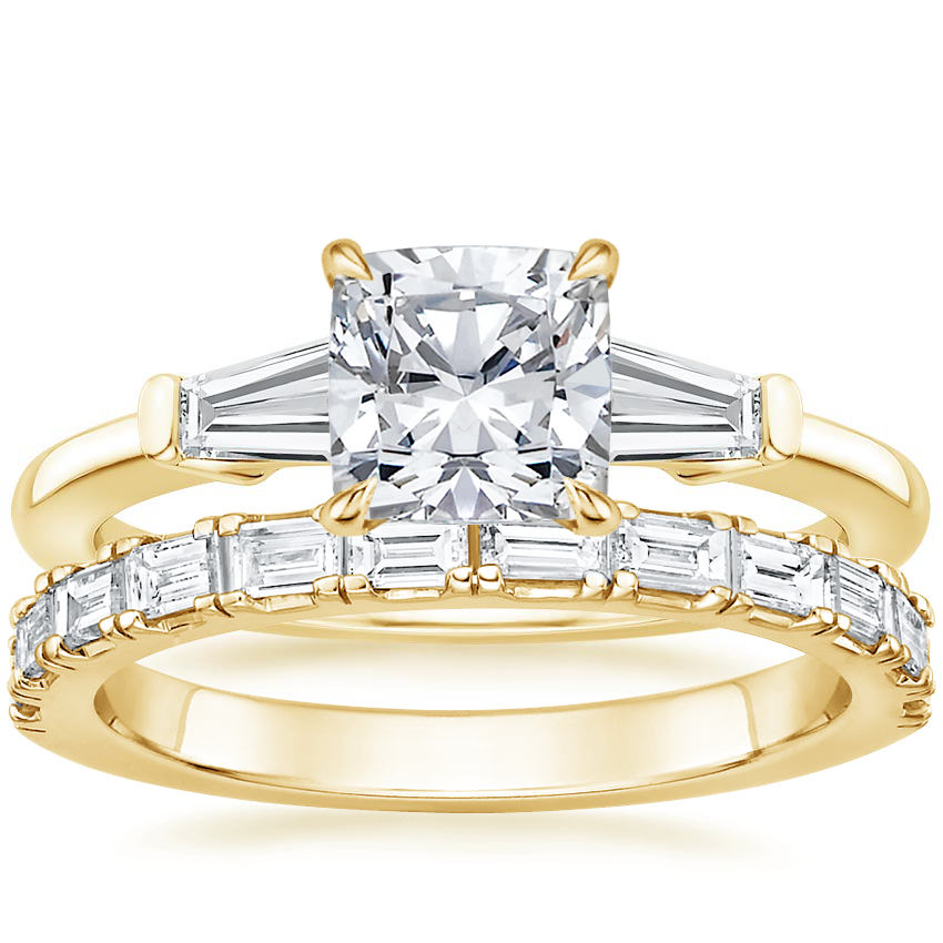 I am absolutely in love with my engagement ring! My fiancé and I went to a show room to look at rings, and this was on my wish list. I love how classic it looks, and it's not as common as a simple band engagement ring. I chose an emerald cut center stone. The only negative is that we chose 18k gold for the metal, so that means it is very soft and will scratch easily. The scratches aren't noticeable, but if you worry about that, maybe choose a different metal.