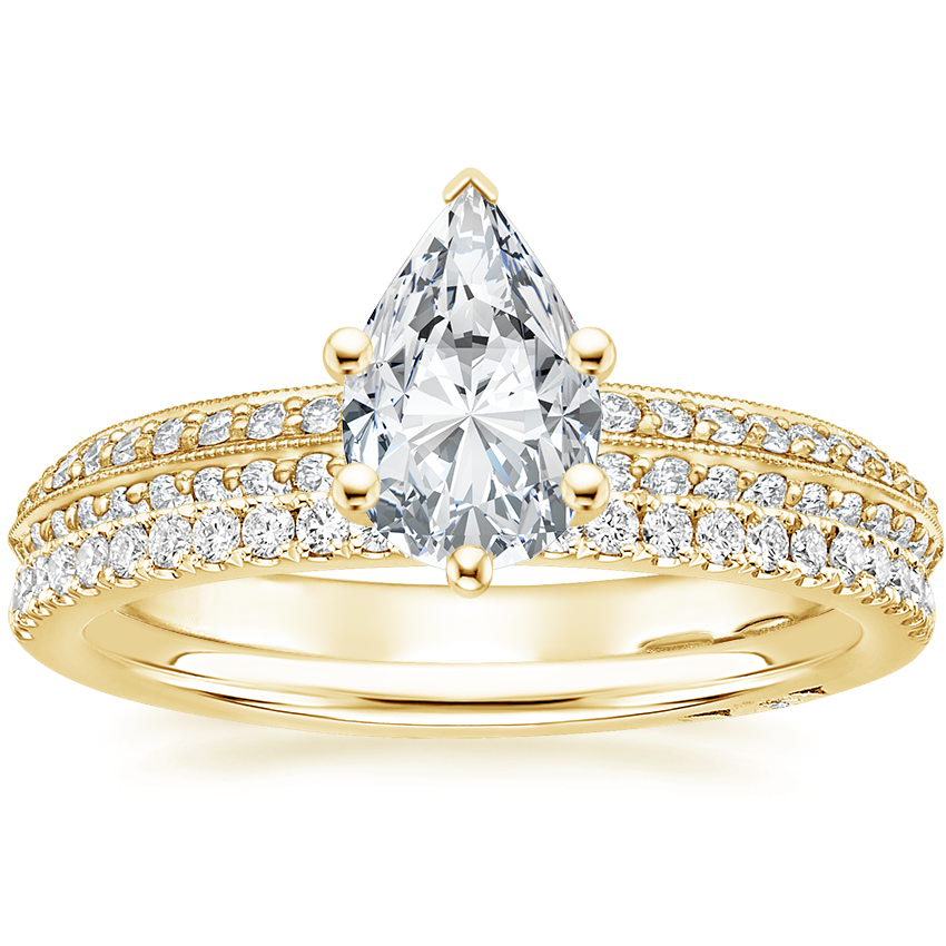 18K Yellow Gold Tacori Sculpted Crescent Knife Edge Diamond Ring with Simply Tacori Diamond Ring (1/5 ct. tw.)