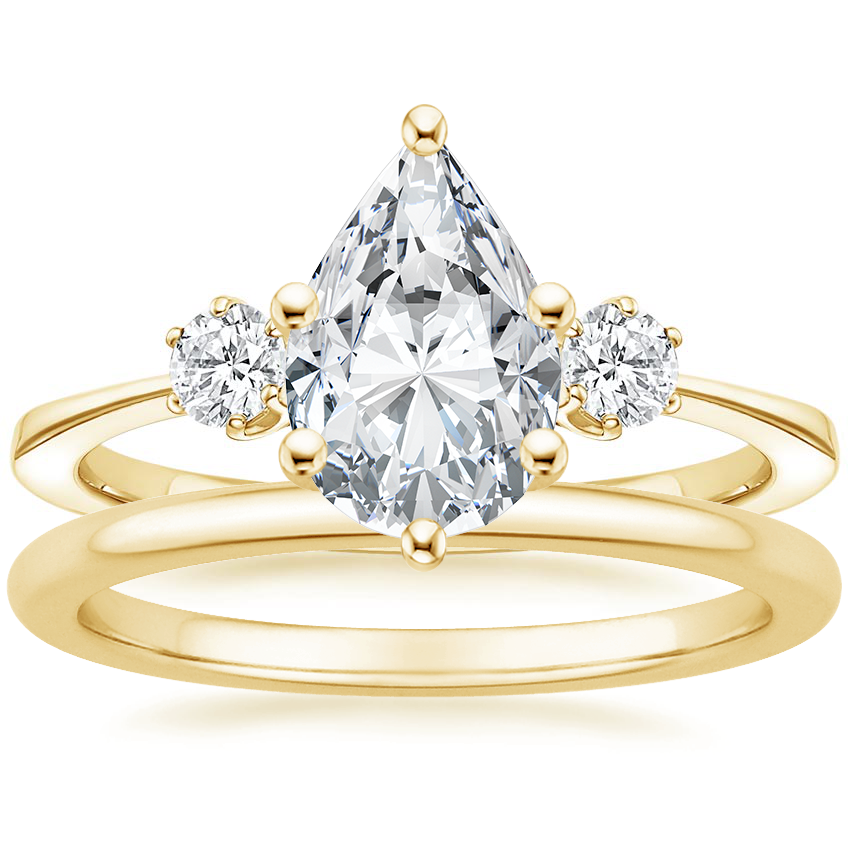18K Yellow Gold Tallula Three Stone Diamond Ring with Petite Comfort Fit Wedding Ring