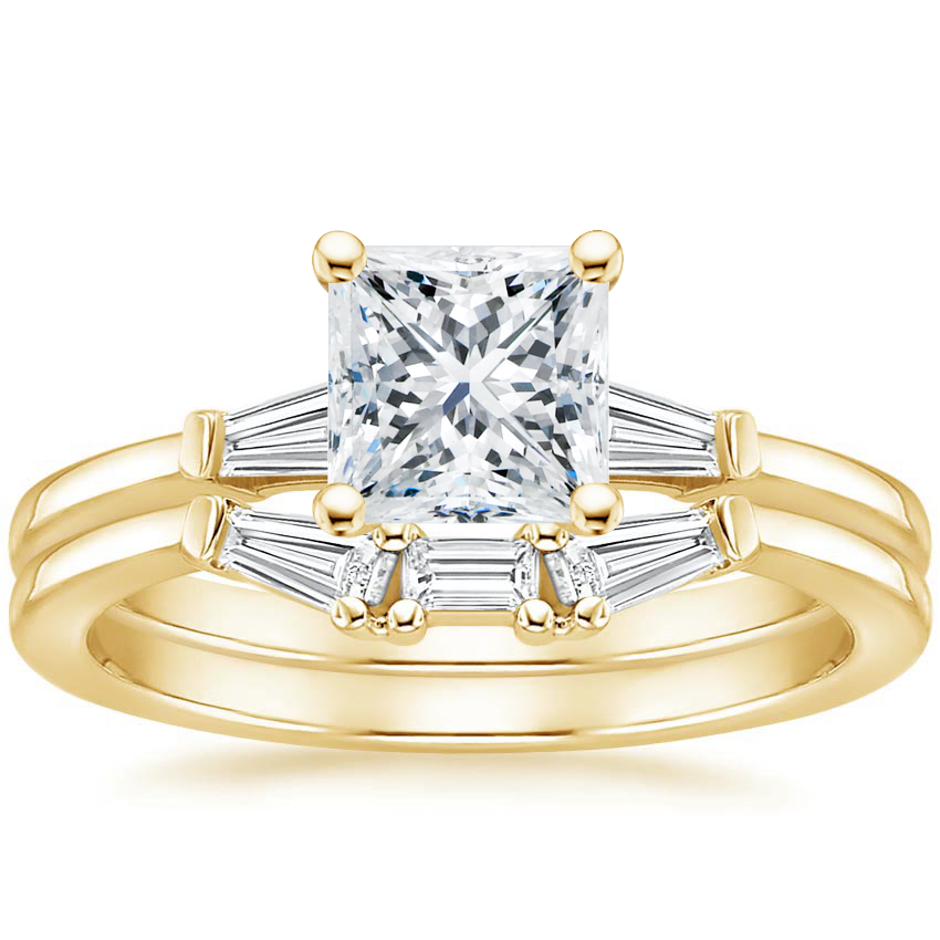 18K Yellow Gold Tapered Baguette Diamond Bridal Set