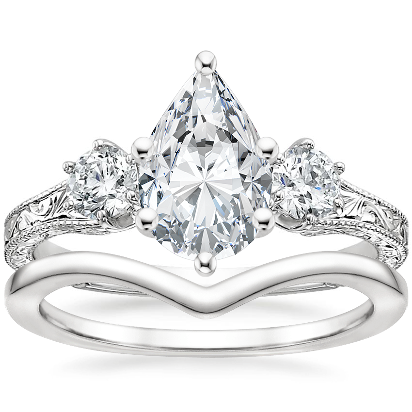 18K White Gold Three Stone Hudson Diamond Ring (1/3 ct. tw.) with Chevron Ring