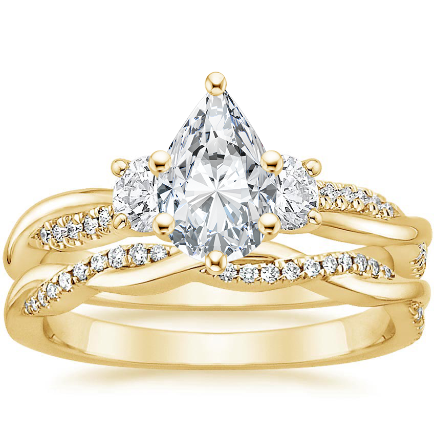 18K Yellow Gold Three Stone Petite Twisted Vine Diamond Bridal Set (1/2 ct. tw.)