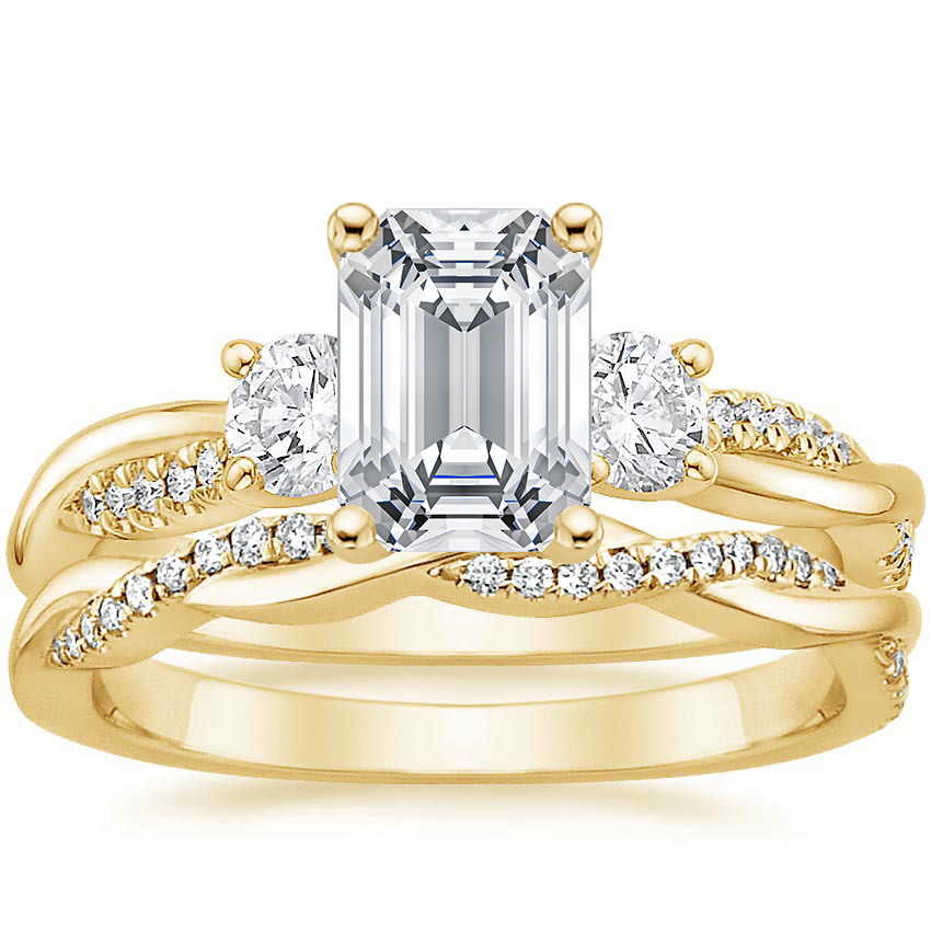 18K Yellow Gold Three Stone Petite Twisted Vine Diamond Bridal Set (1/2 ct. tw.)