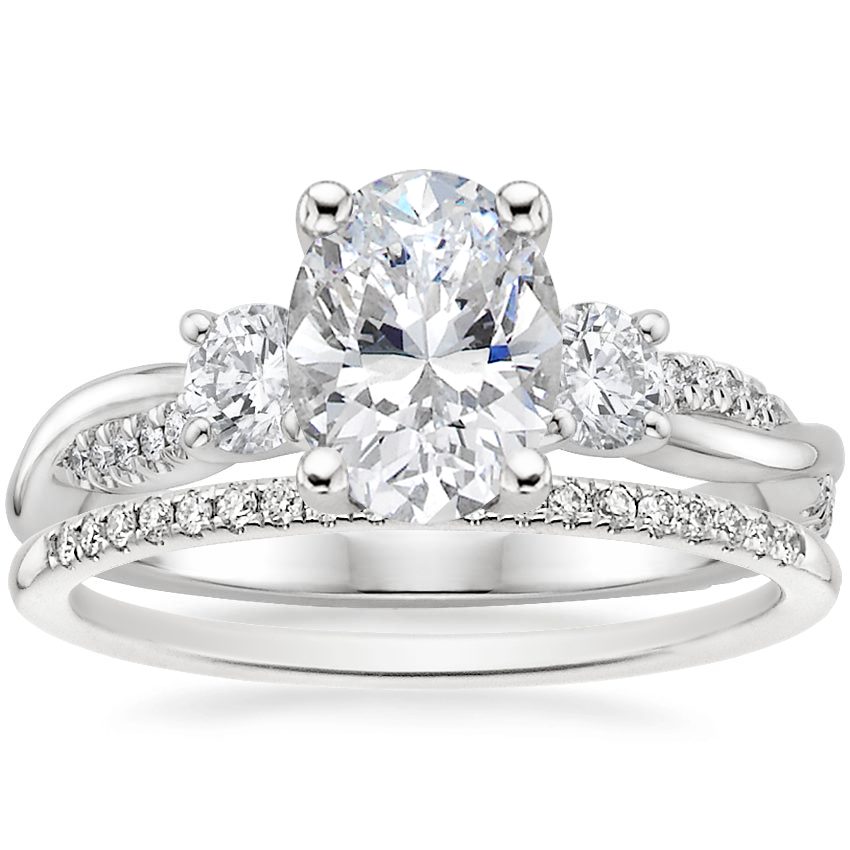 Three Stone Petite Twisted Vine Diamond Ring (2/5 ct. tw.) with Whisper Diamond Ring (1/10 ct. tw.) in Platinum