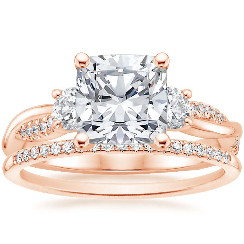 14K Rose Gold Three Stone Petite Twisted Vine Diamond Ring (2/5 ct. tw.) with Whisper Diamond Ring (1/10 ct. tw.)