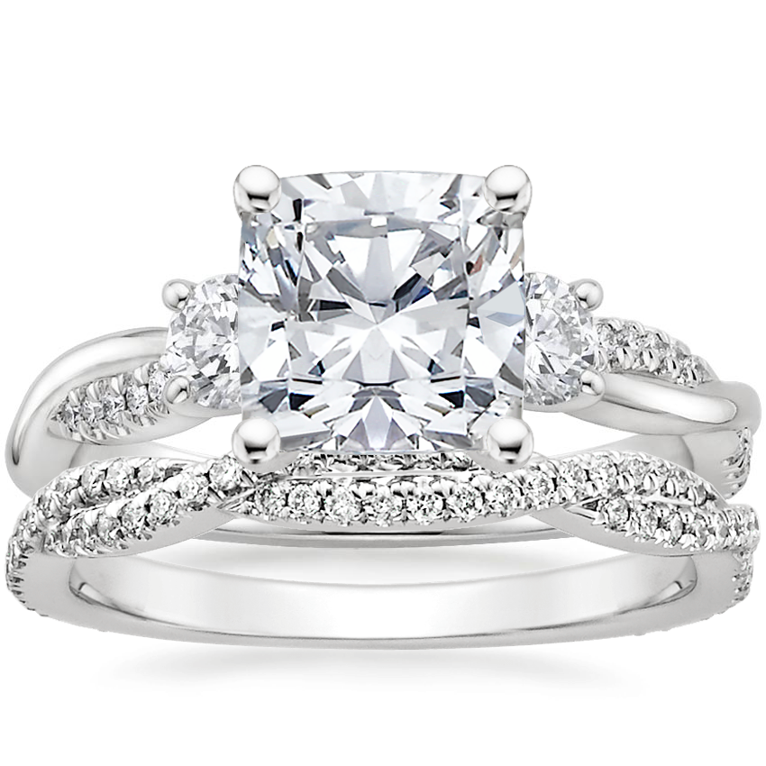 Platinum Three Stone Petite Twisted Vine Diamond Ring with Petite Luxe Twisted Vine Diamond Ring