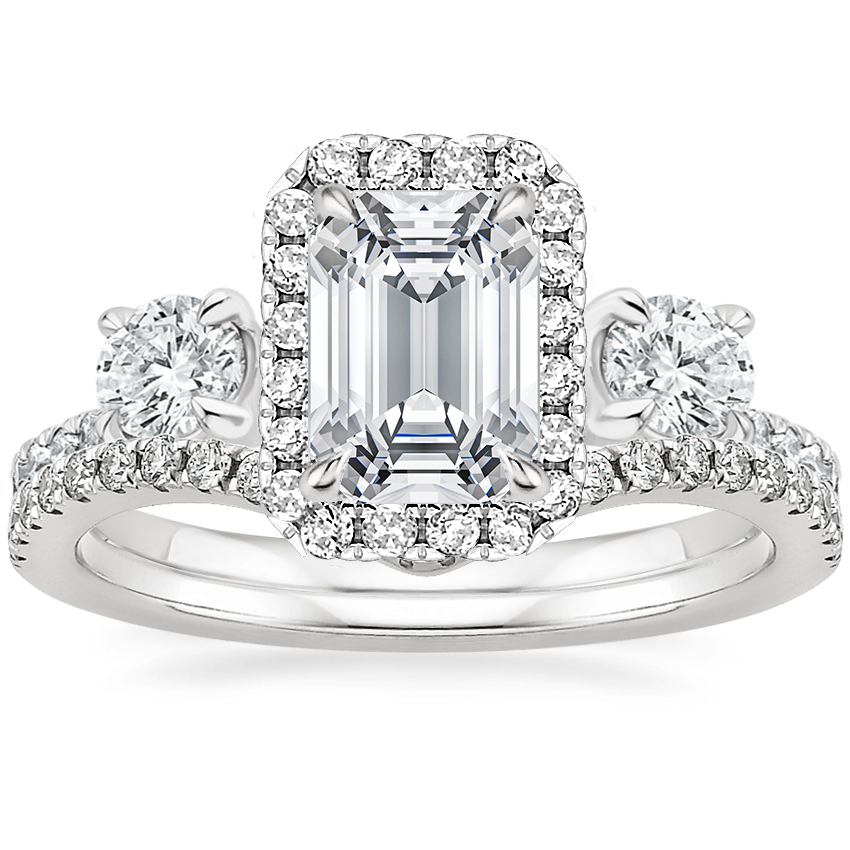 18K White Gold Three Stone Waverly Diamond Ring (3/4 ct. tw.) with Flair Diamond Ring (1/6 ct. tw.)