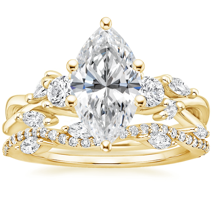 18K Yellow Gold Three Stone Willow Diamond Ring (1/3 ct. tw.) with Luxe Winding Willow Diamond Ring (1/4 ct. tw.)