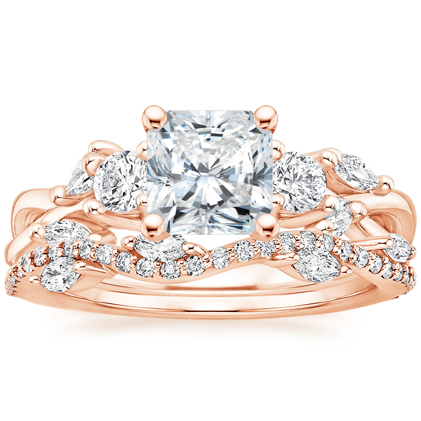 14K Rose Gold Three Stone Willow Diamond Ring (1/3 ct. tw.) with Luxe Winding Willow Diamond Ring (1/4 ct. tw.)
