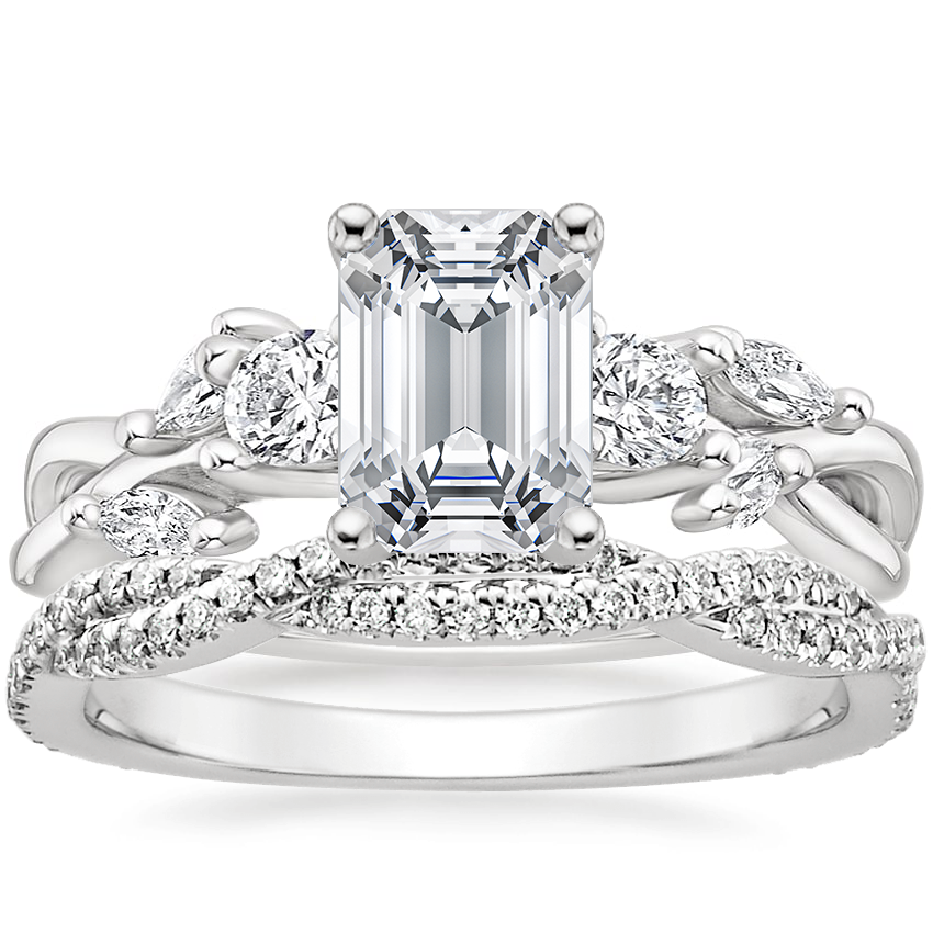 Platinum Three Stone Willow Diamond Ring (1/3 ct. tw.) with Petite Luxe Twisted Vine Diamond Ring (1/4 ct. tw.)