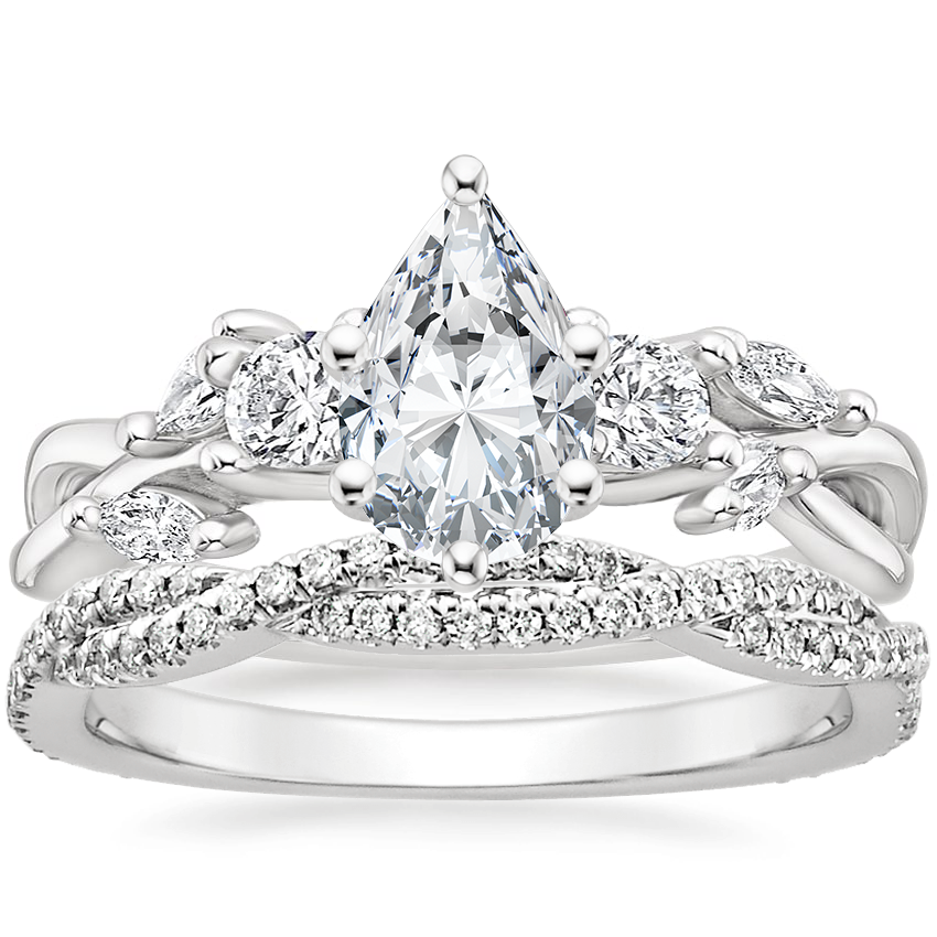 18K White Gold Three Stone Willow Diamond Ring (1/3 ct. tw.) with Petite Luxe Twisted Vine Diamond Ring (1/4 ct. tw.)