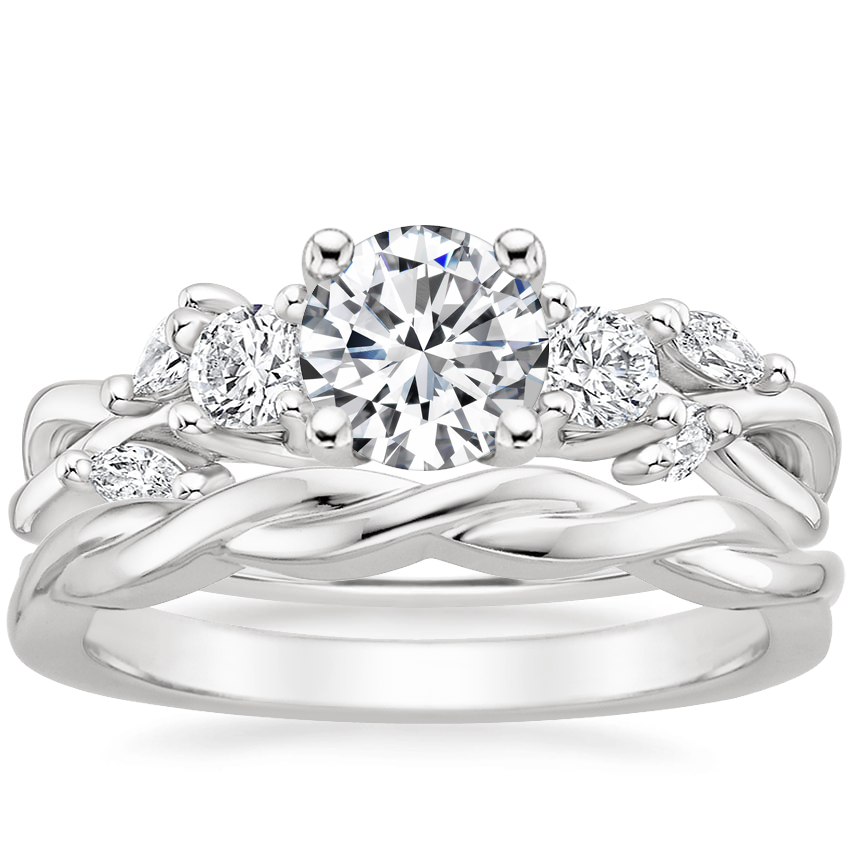 18K White Gold Three Stone Willow Diamond Ring (1/3 ct. tw.) with Twisted Vine Ring