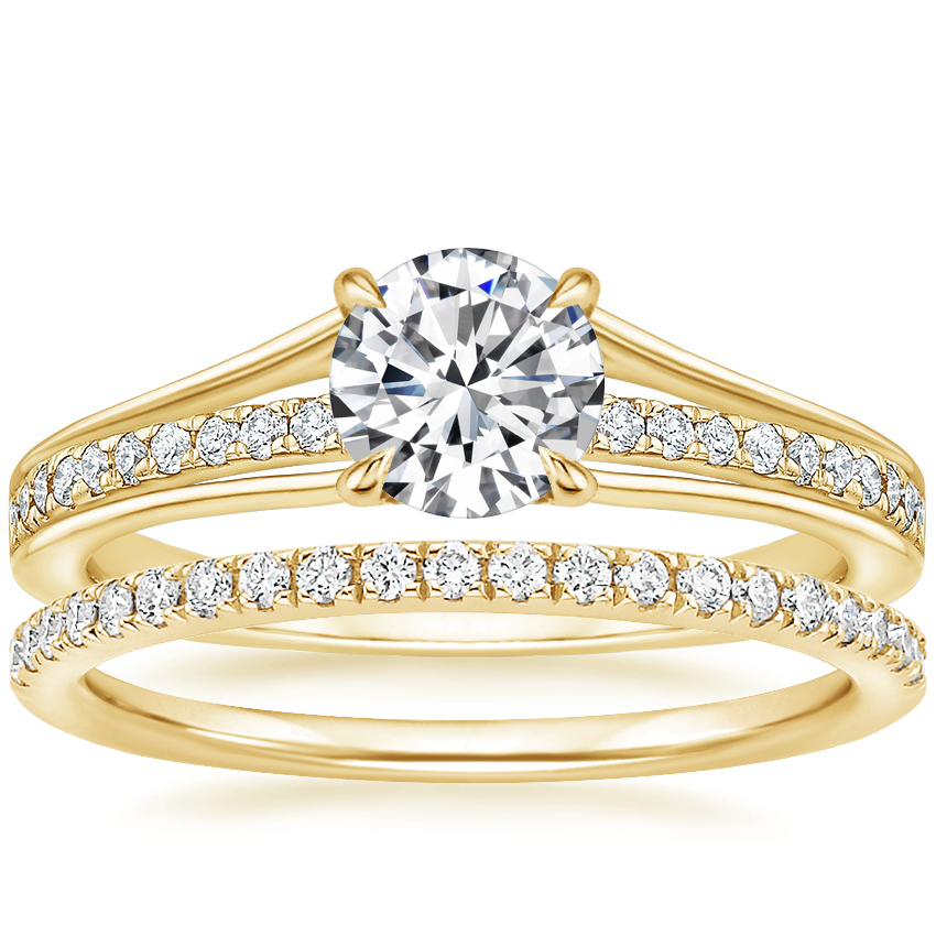 18K Yellow Gold Tressa Split Shank Diamond Ring with Ballad Diamond Ring (1/6 ct. tw.)