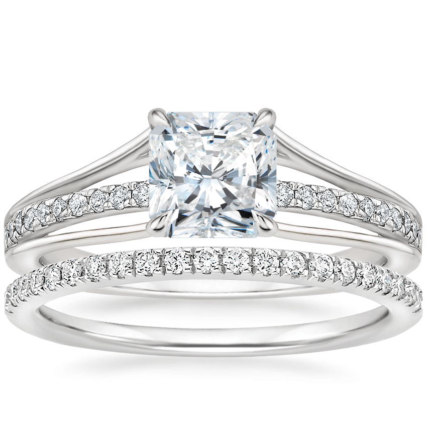 18K White Gold Tressa Split Shank Diamond Ring with Ballad Diamond Ring (1/6 ct. tw.)