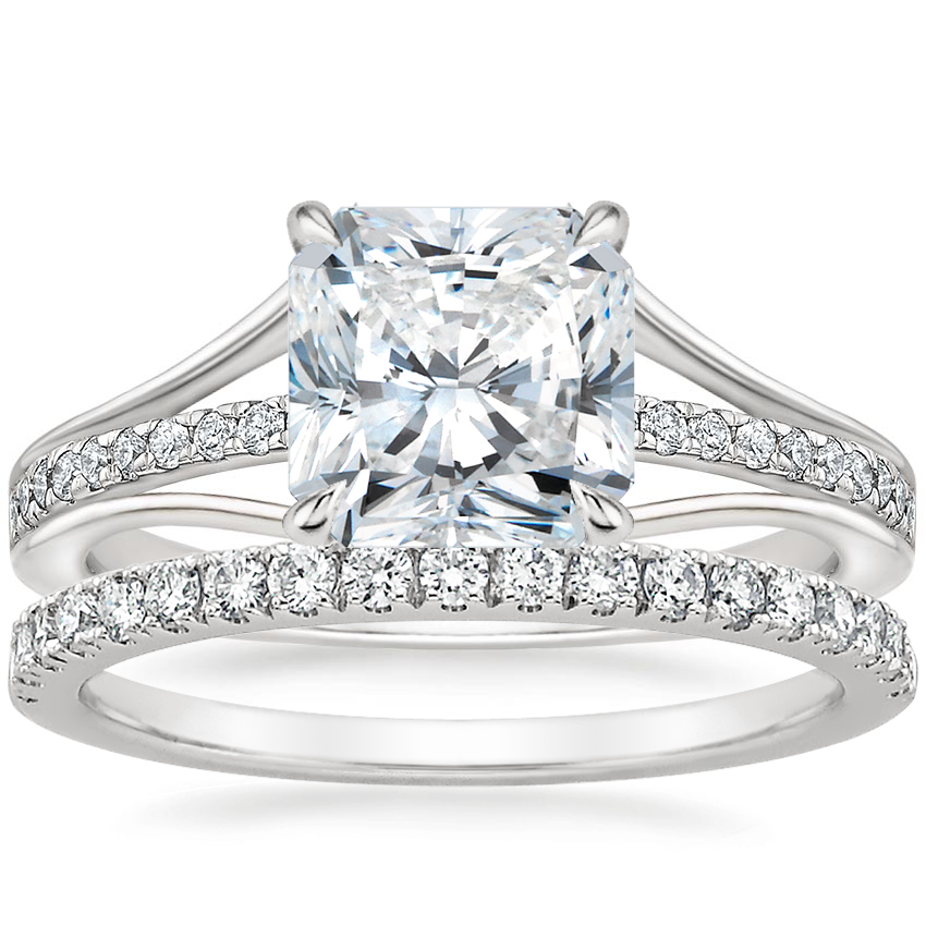 Platinum Tressa Split Shank Diamond Ring with Bliss Diamond Ring (1/5 ct. tw.)