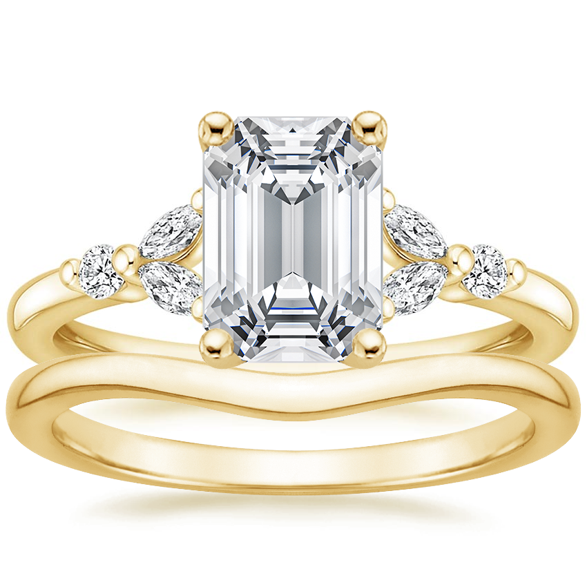 18K Yellow Gold Verbena Diamond Ring with Petite Curved Wedding Ring