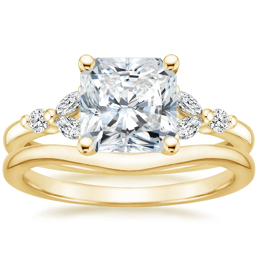 Verbena Diamond Ring with Petite Curved Wedding Ring in 18K Yellow Gold