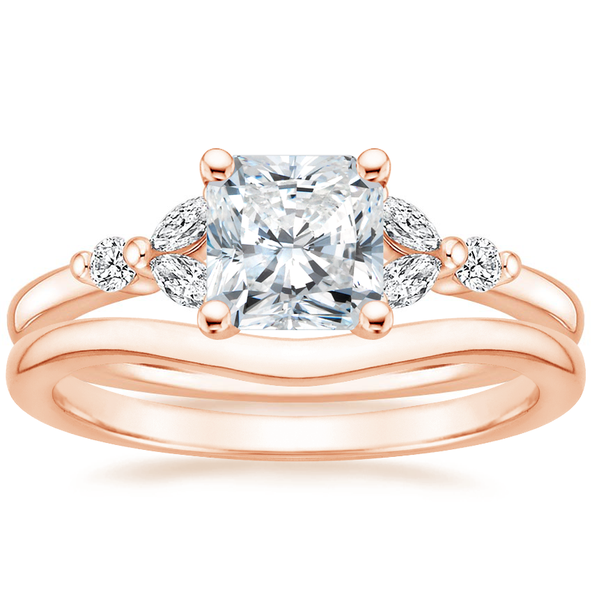 14K Rose Gold Verbena Diamond Ring with Petite Curved Wedding Ring
