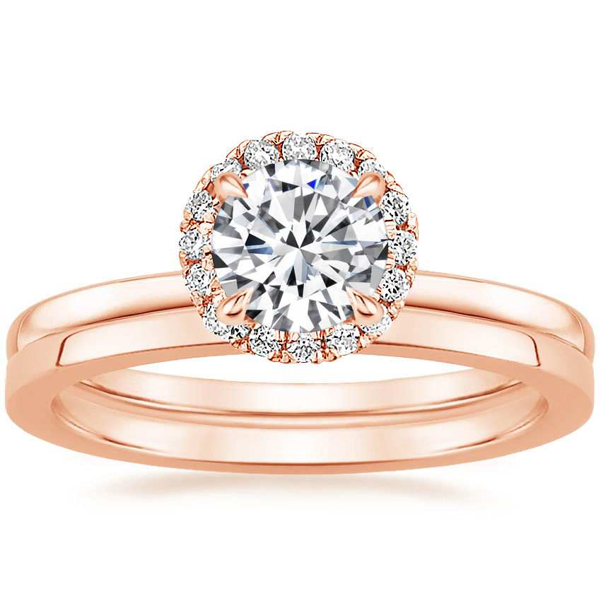 14K Rose Gold Vienna Diamond Ring with Petite Quattro Wedding Ring