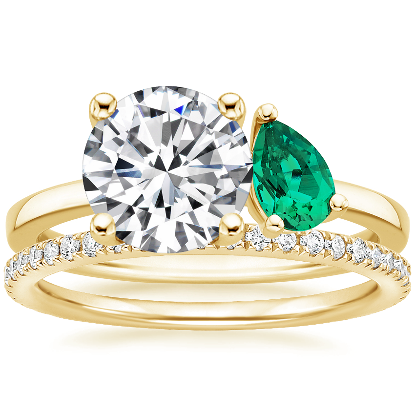 18K Yellow Gold Viridian Toi et Moi Diamond Ring with Luxe Ballad Diamond Ring (1/4 ct. tw.)