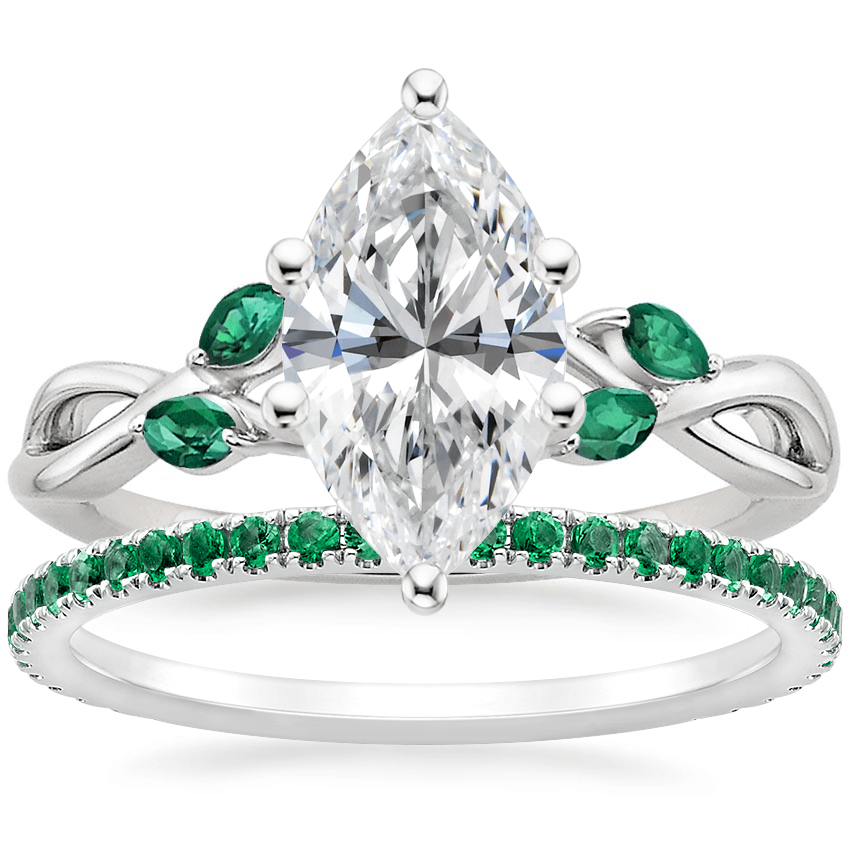 Platinum Willow Ring With Lab Emerald Accents with Luxe Ballad Emerald Ring