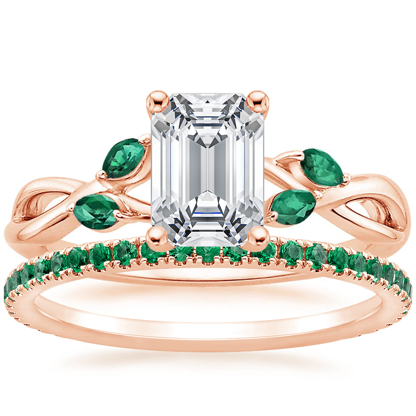 14K Rose Gold Willow Ring With Lab Emerald Accents with Luxe Ballad Emerald Ring