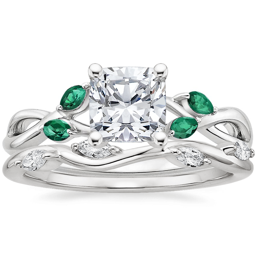 18K White Gold Willow Ring With Lab Emerald Accents with Winding Willow Diamond Ring (1/8 ct. tw.)