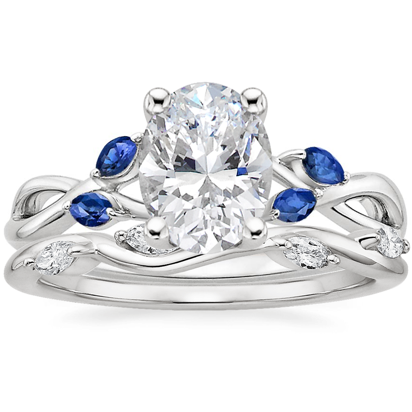 Platinum Willow Ring With Sapphire Accents with Winding Willow Diamond Ring (1/8 ct. tw.)