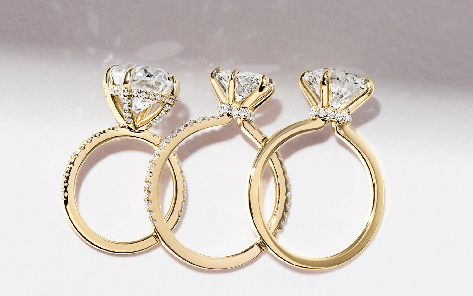 Hidden halo rings are a contemporary take on the halo setting, combining subtle brilliance with modern design. This style is popular among those who appreciate clean lines and architectural details while still enjoying the refined sparkle of additional diamonds.