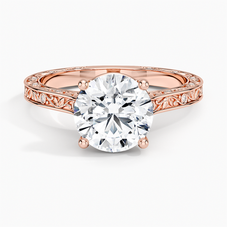 Rose gold engagement rings feature a distinctive pinkish hue that complements a diamond's sparkle. A rose gold engagement ring is an excellent choice for those interested in both form and function: they are as durable as they are beautiful. First crafted in the early 19th century, rose gold engagement rings are incredibly charming. Rose gold is a precious metal that is created from pure gold mixed with other alloys like copper. Learn more about rose gold in our precious metals guide.