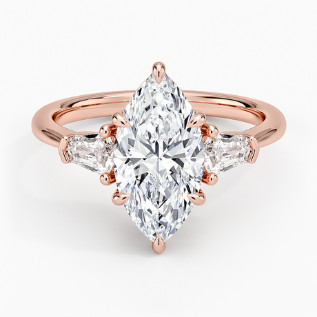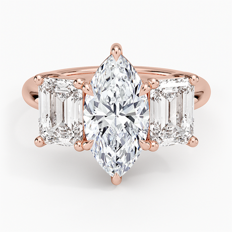 Rose Gold Three Stone Marquise Cut Engagement Rings